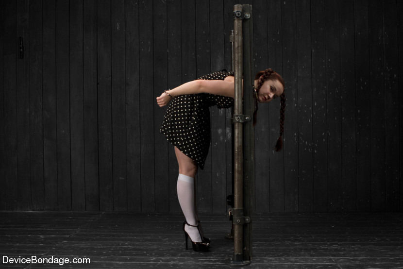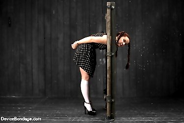 Annabelle Lee is as cute as they come. Her youthful face gives us the illusion of far deeper fantasies. In scene one, pig is trapped by the neck in a standing stock. Her shoes are drilled into the floor and she is handcuffed. She earns the name pig by her snorting laughter when she is tickled mercilessly. This earns her a pig nose, pig tails, and a pig butt plug. Second, pig is bent into a challenging back arch. Claire takes advantage of Anabelles tiny bush tormenting her with the mean black clips all over her cunt hair and then ripping the clips off. Third, pig gets her fuck hole greased and primed to be pummeled with the fucking machine. Her incredibly sensitive feet get tormented with the tazapper and more tickling. Her orgasms are so intense they seem almost painful. Cum watch this bitch repetitively explode and surrender to unforgiving metal, wood, and leather.