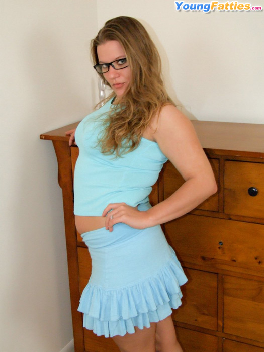 Blonde hoochie in fishnet stockings strokes pussy